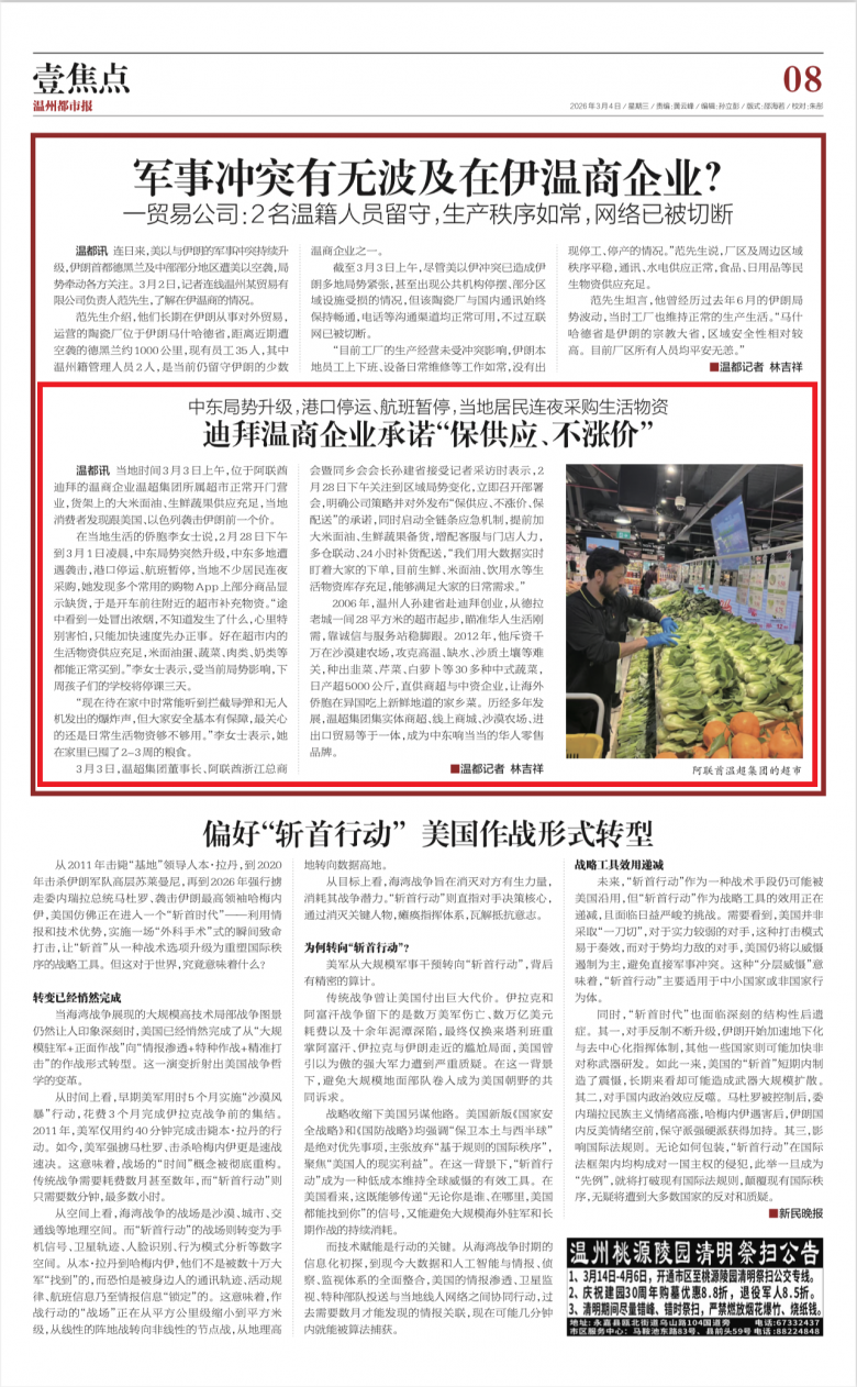 ▲《温州都市报》2026年3月4日08版