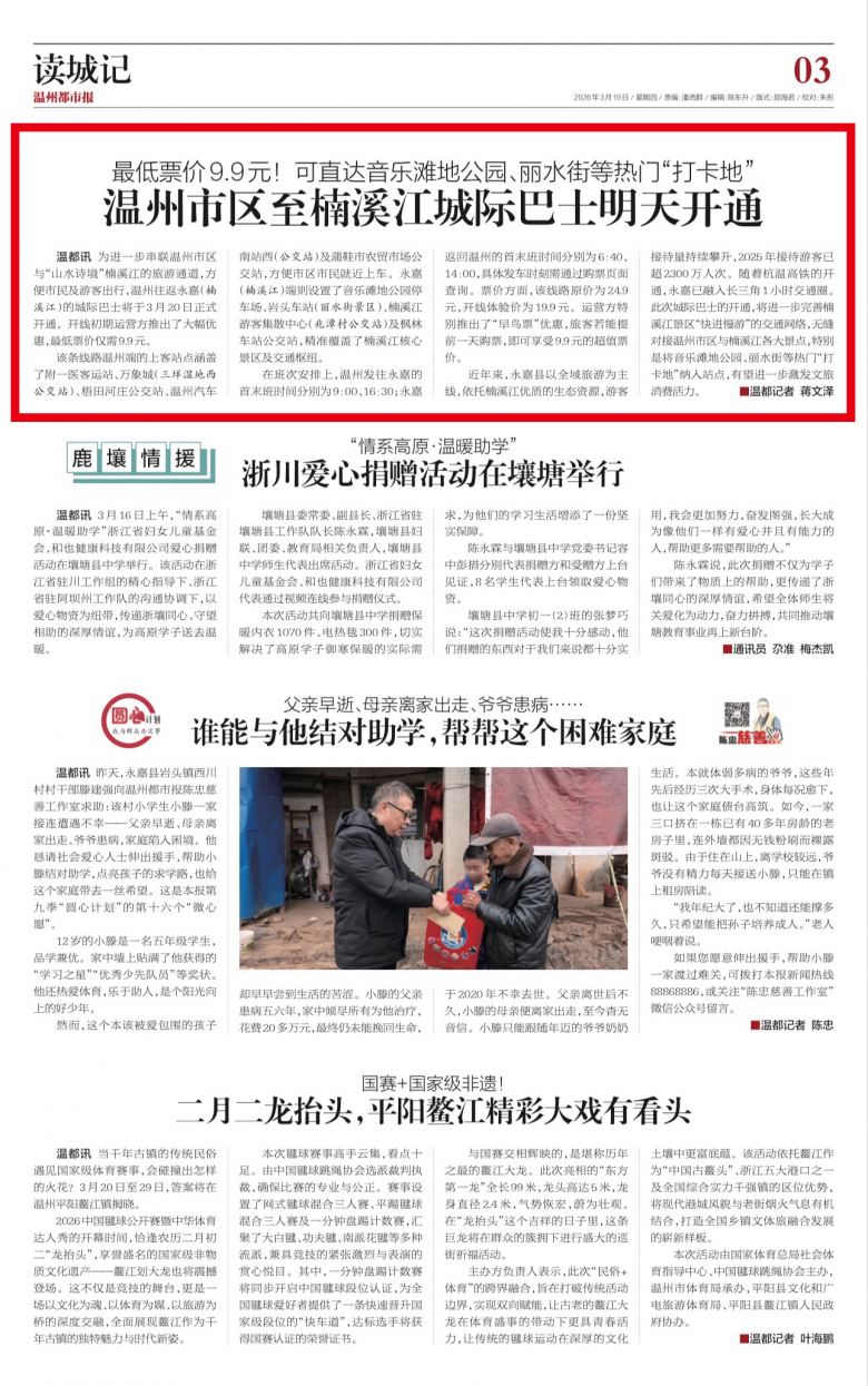 近年来,永嘉县以全域旅游为主线,依托楠溪江优质的生态资源,游客接待量持续攀升,2025年接待游客已超2300万人次。随着杭温高铁的开通,永嘉已融入长三角1小时交通圈。此次城际巴士的开通,将进一步完善楠溪江景区“快进慢游”的交通网络,无缝对接温州市区与楠溪江各大景点,特别是将音乐滩地公园、丽水街等热门“打卡地”纳入站点,有望进一步激发文旅消费活力。