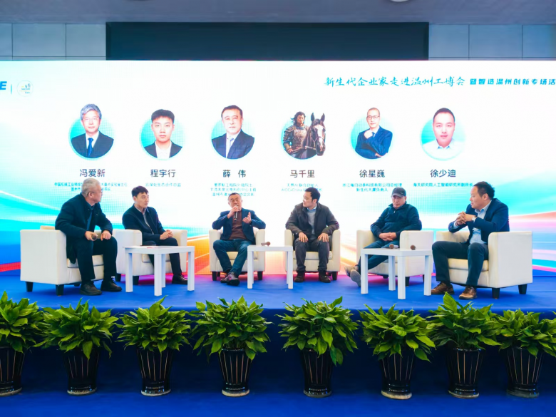随后的圆桌对话环节由中国机械工业精细加工与检测技术重点实验室主任、温州市激光行业协会秘书长冯爱新主持。每日动泰科技总经理、新生代大厦负责人徐星巍,与无界AI马千里、云深处程宇行、丰湾未来光电科创中心薛伟、海天研究院徐少迪共同探讨了AI赋能工业制造与温州经济发展的前景,并与现场新生代企业家互动。徐星巍表示,温州新生代大厦已有多个“AI+”项目实现商业化落地,他预见未来一年内将有更多如海天AI注塑这样的专业领域大模型问世。