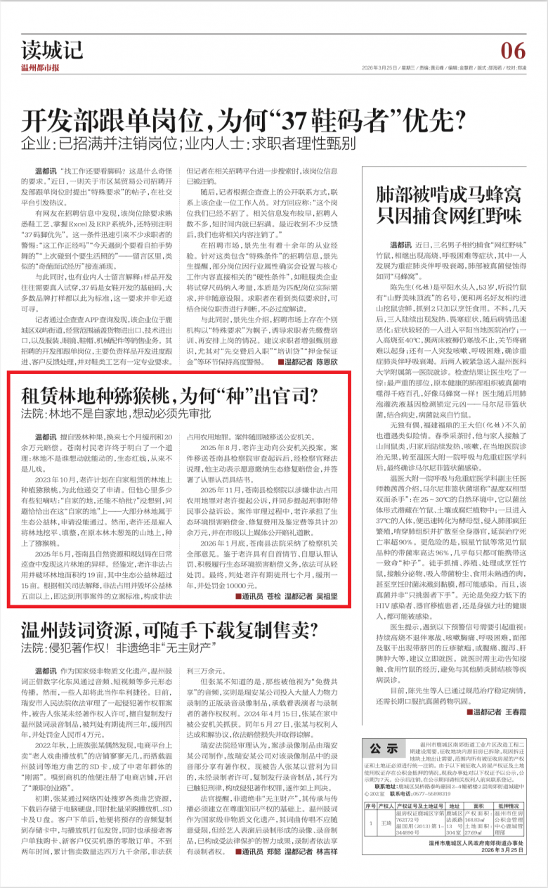 ▲《温州都市报》2026年3月25日06版