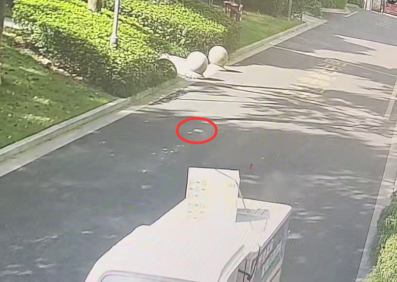 去年10月23日上午9时许,一名快递员骑着电瓶车在小区内经过,几片瓷砖从天而降,砸到了离他大约3米的路面上;此外,还有一块脱落的瓷砖击穿了低楼层业主的阳光房顶棚,砸中一台洗衣机,现场一片狼藉。