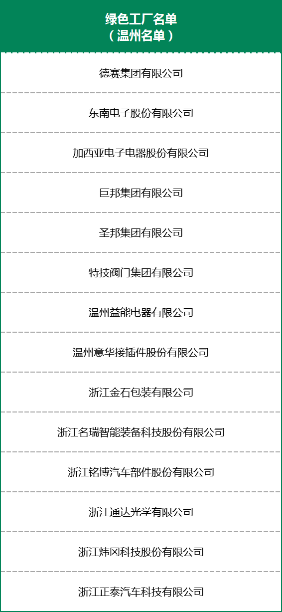 近日,工业和信息化部办公厅公布了2024年度绿色制造名单。2024年度新培育国家层面绿色工厂1382家、绿色工业园区123家、绿色供应链管理企业126家。一起来看温州入选名单↓(更多内容请点击详情)