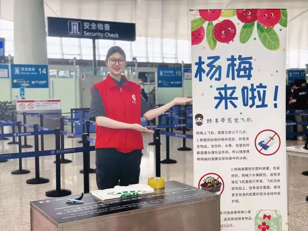 温州机场推出了“杨梅季特色自助打包服务”,在T2航站楼安检区入口的臻享服务台,胶带、剪刀等小工具一应俱全,旁设易拉宝,清晰印着杨梅携带注意事项,旅客可自助打包。(更多内容请点击详情)